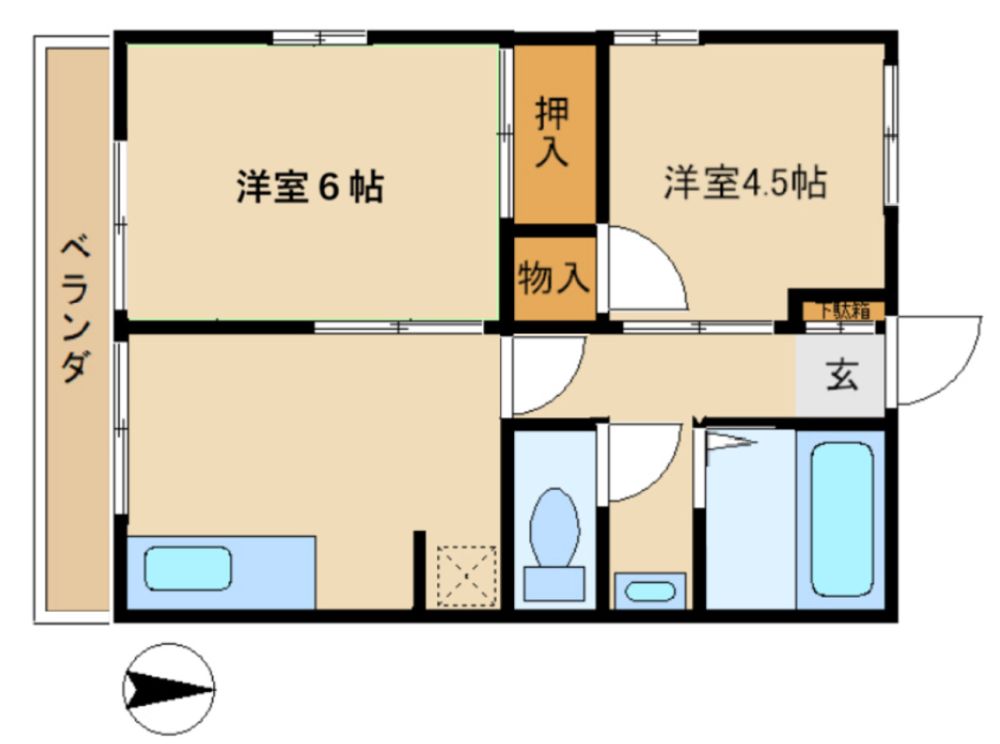 | 築年月 | 1985年5月 | 間取り | 2DK( 洋室6畳/洋室4.5畳/DK6畳 ) | 専有面積 | 37.5m2 |
