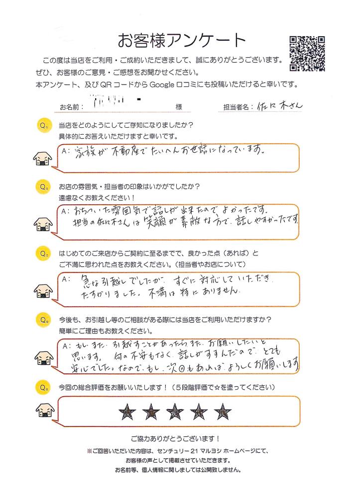 もしまた引っ越す機会があったらまたお願いしたいと思います。何の不安もなく話が進んだのでとても安心でした。なので、もし次回もあればよろしくお願いします。